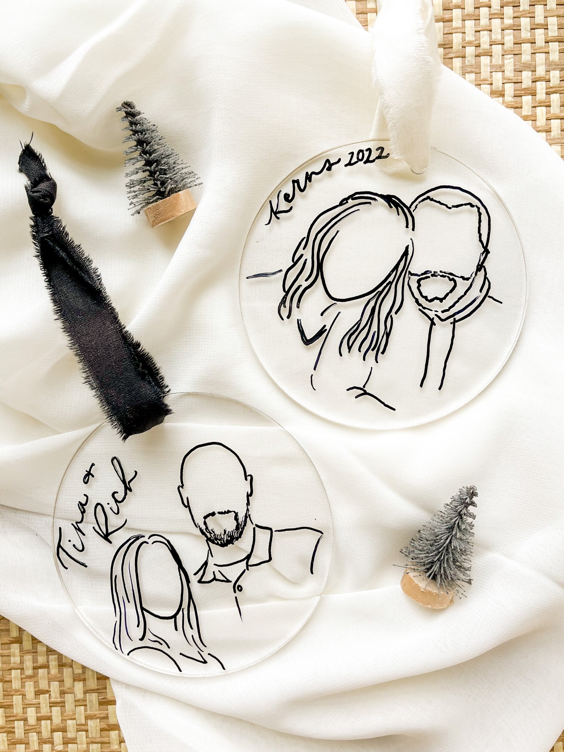Turn your favorite photo into a line drawing portrait ornament! This works best for photos of 1-4 people, and the result is a perfectly customized gift. Each ornament is 3.5 inches across.